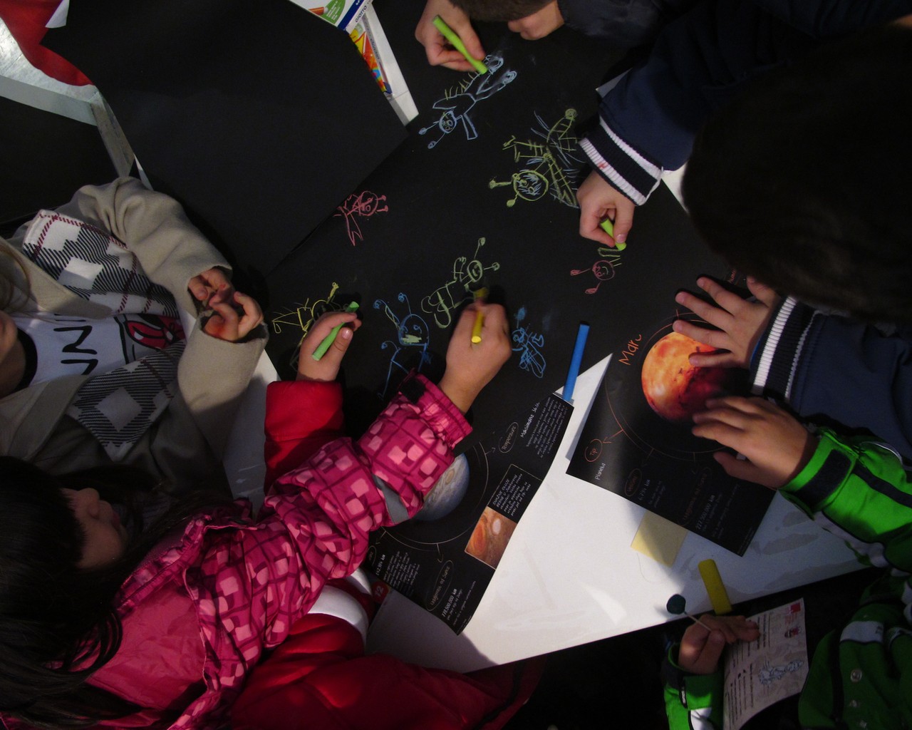 Kids enjoy designing their own aliens as part of the EU-UNAWE workshop at Festival Nauke 2013 in Belgrade, Serbia