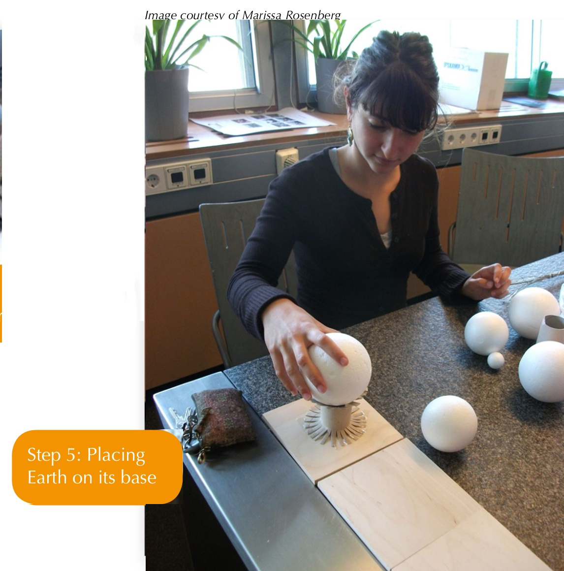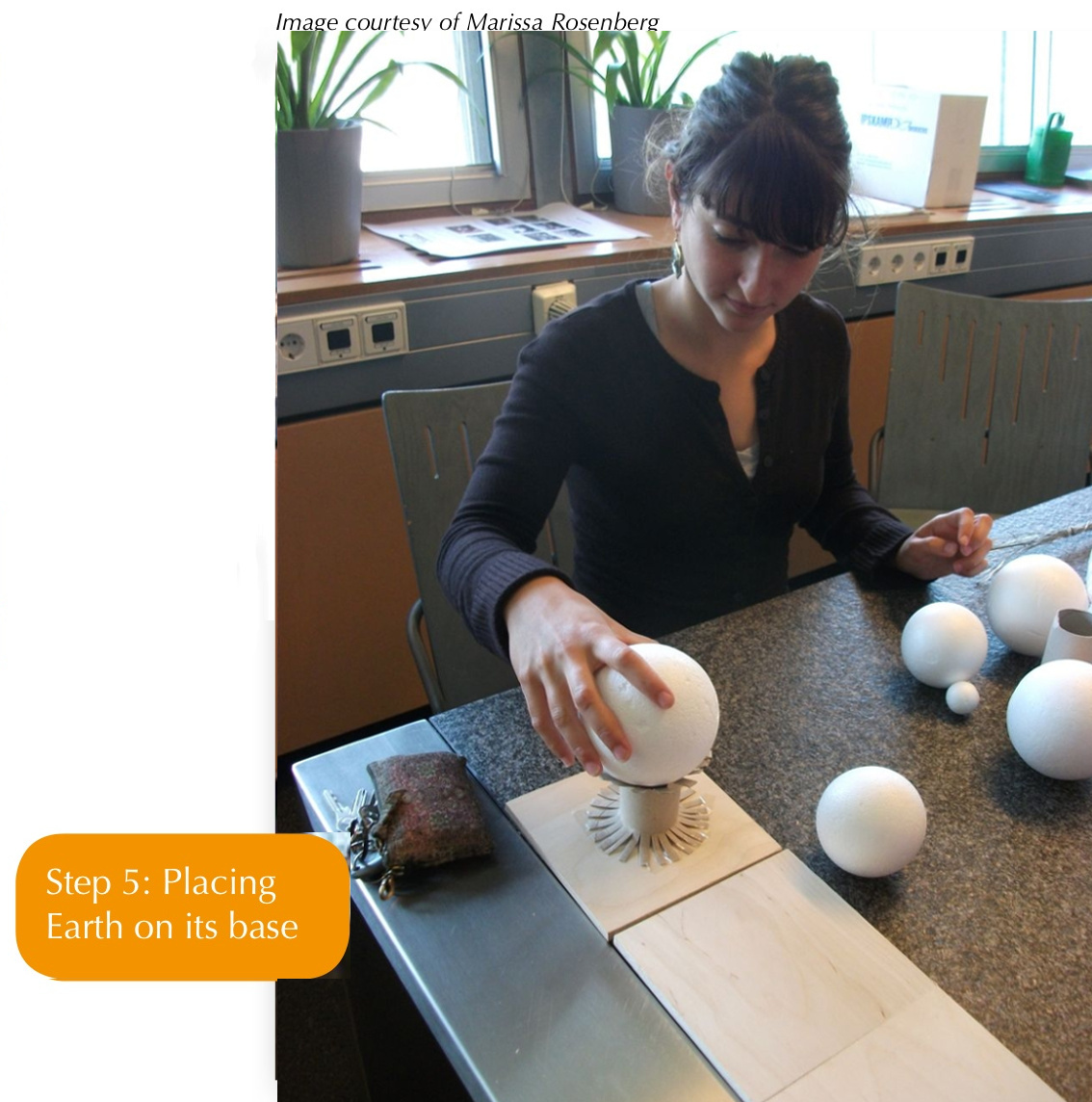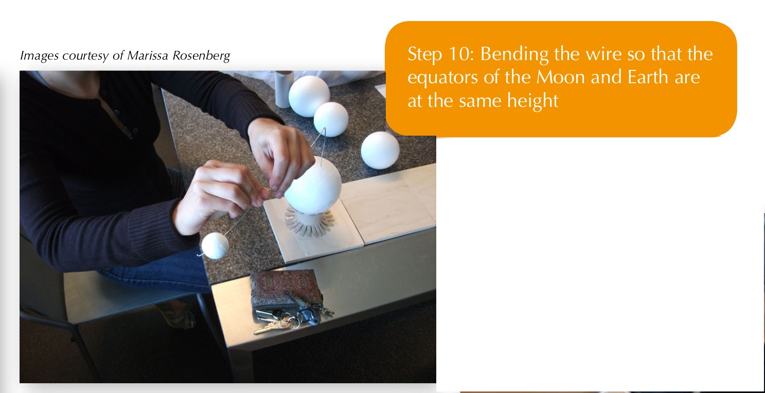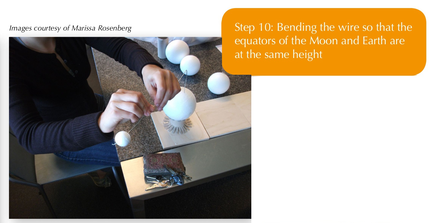 Insert the other end of the wire into the "Moon". The Moon’s equator should be at the same height as the Earth’s equator (Image 8).