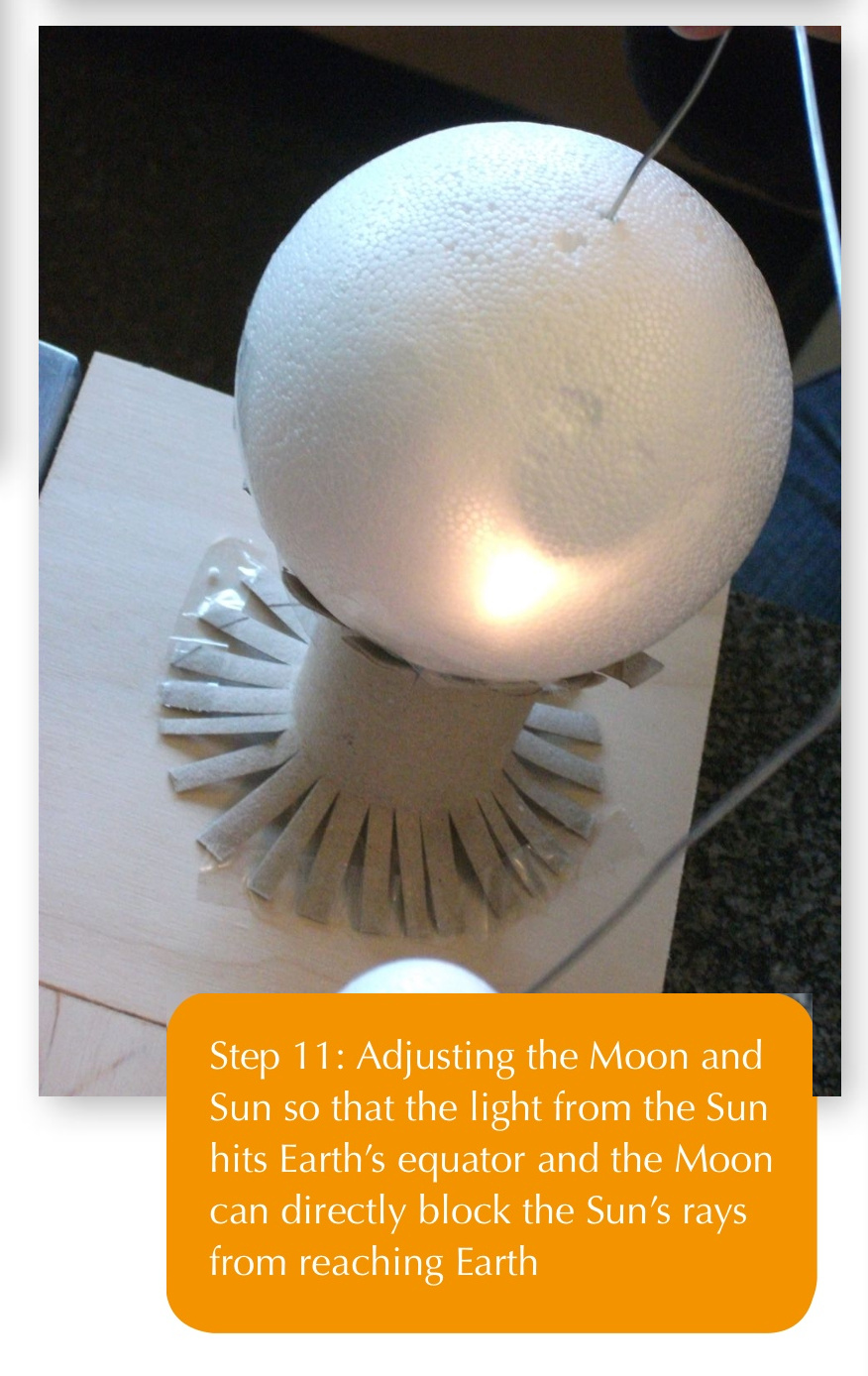 Divide the class into groups of three or four. Give each group the materials to make their own model of the Sun-Moon-Earth system.