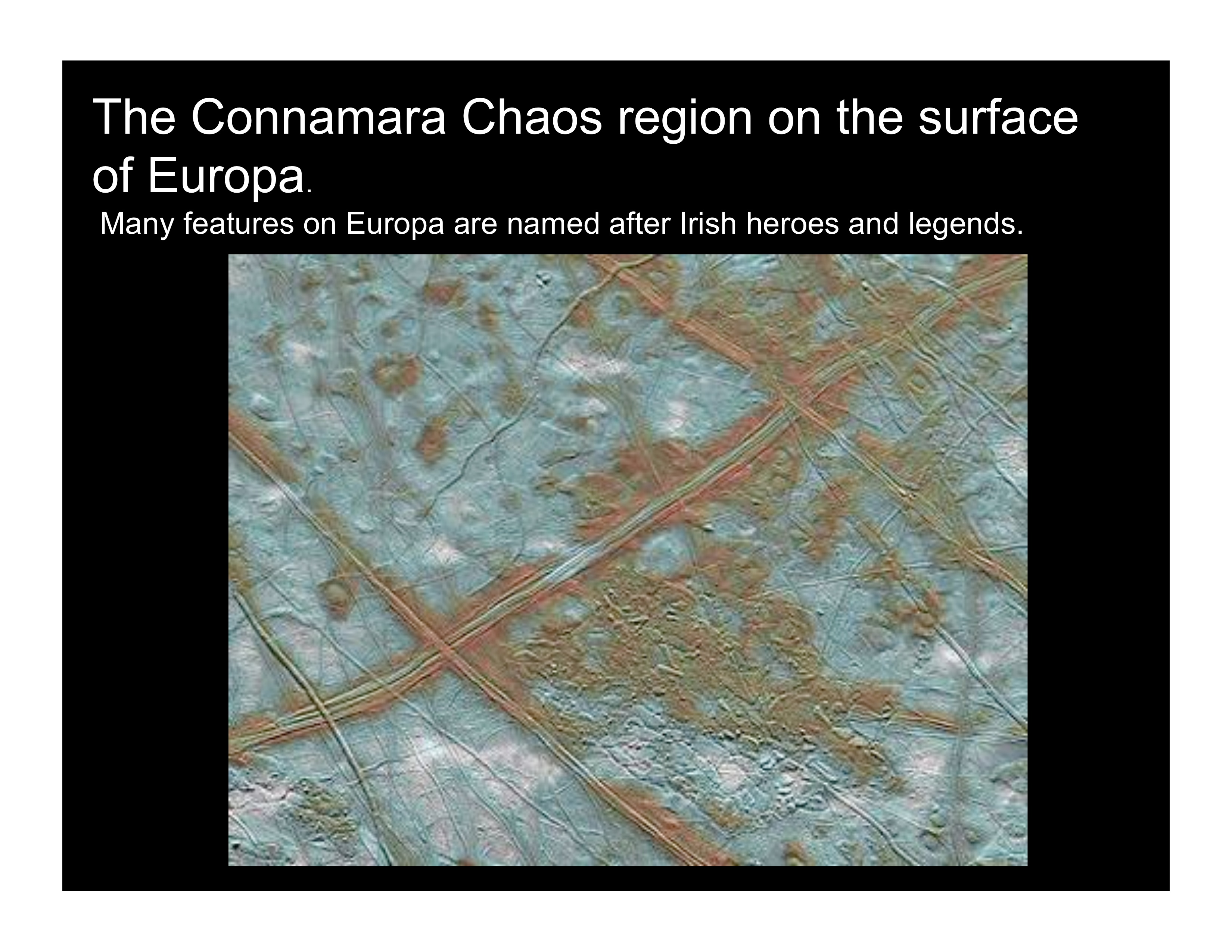 - Europa: What do you think it would be like to live in a cold, icy ocean? Why do you think many of the features on moons are named after famous people?