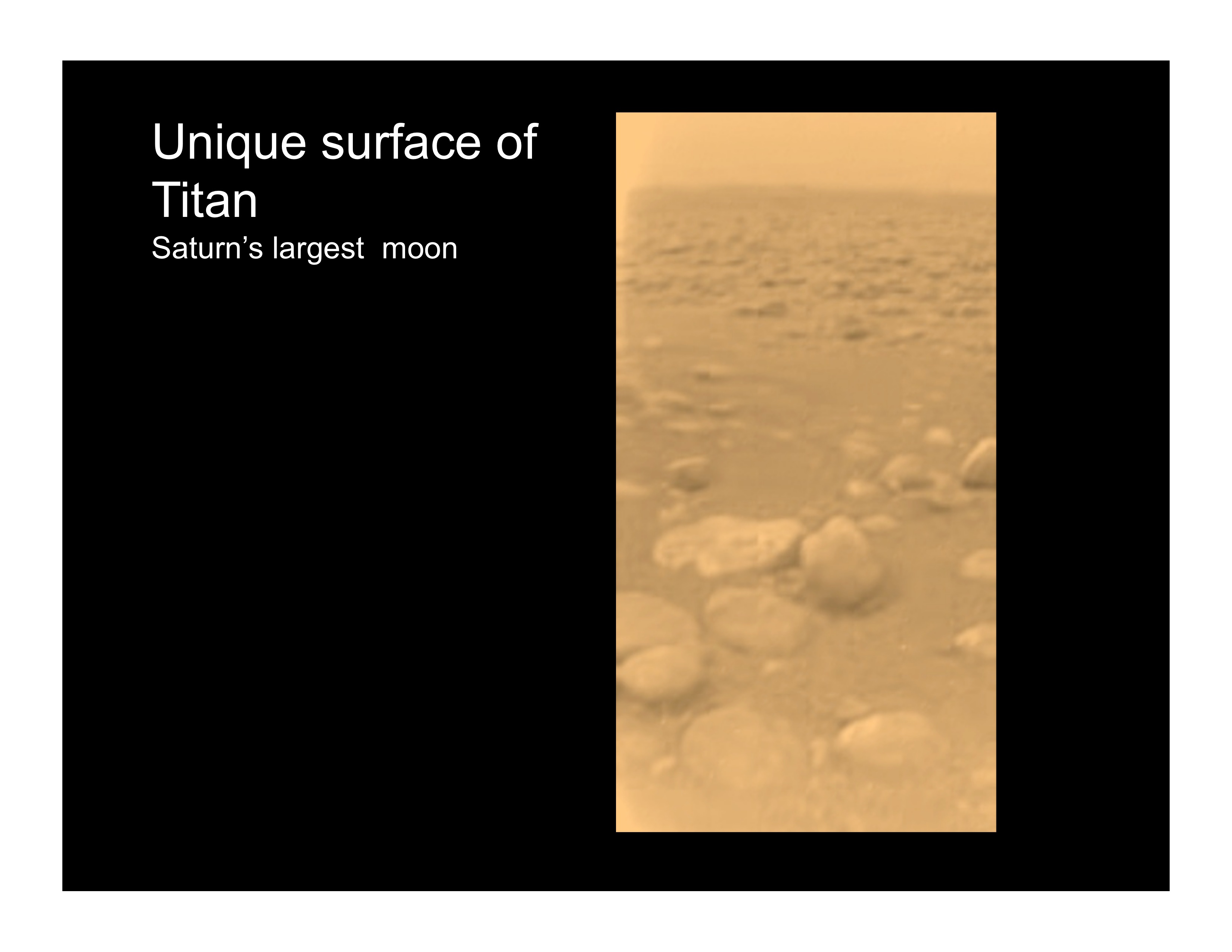 - Saturn has many moons. Enceladus, one of Saturn’s moons, is one of the most beautiful moons in the Solar System. It has an ocean under its surface that is made of very, very cold water. Every now and then, this water explodes out of the southern half of this moon. The water shoots out of slits in its icy surface, and is shot hundreds of kilometres out into space. Hyperion, another one of Saturn’s moons, is very strange indeed. Most moons go around their planet in a nice, smooth path, but Hyperion tumbles around Saturn. Titan, Saturn’s largest moon, has an atmosphere made of methane and ethane. Methane is a smelly gas, so this must be a really smelly place.