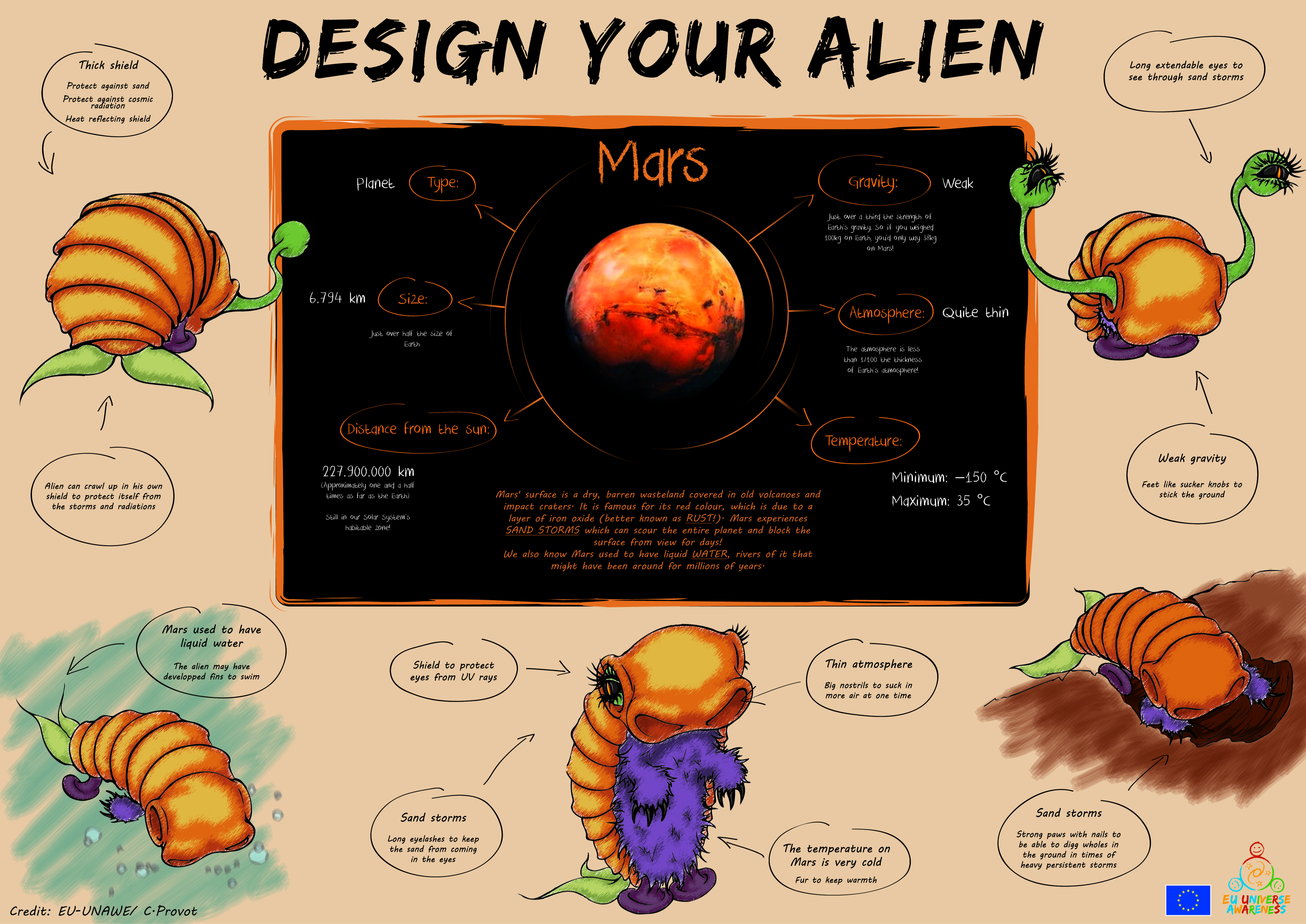 Background InformationThe following information is included in the resources attached to this activity; the Design Your Alien script and related presentation, the Solar System fact sheets and the Mars alien example.