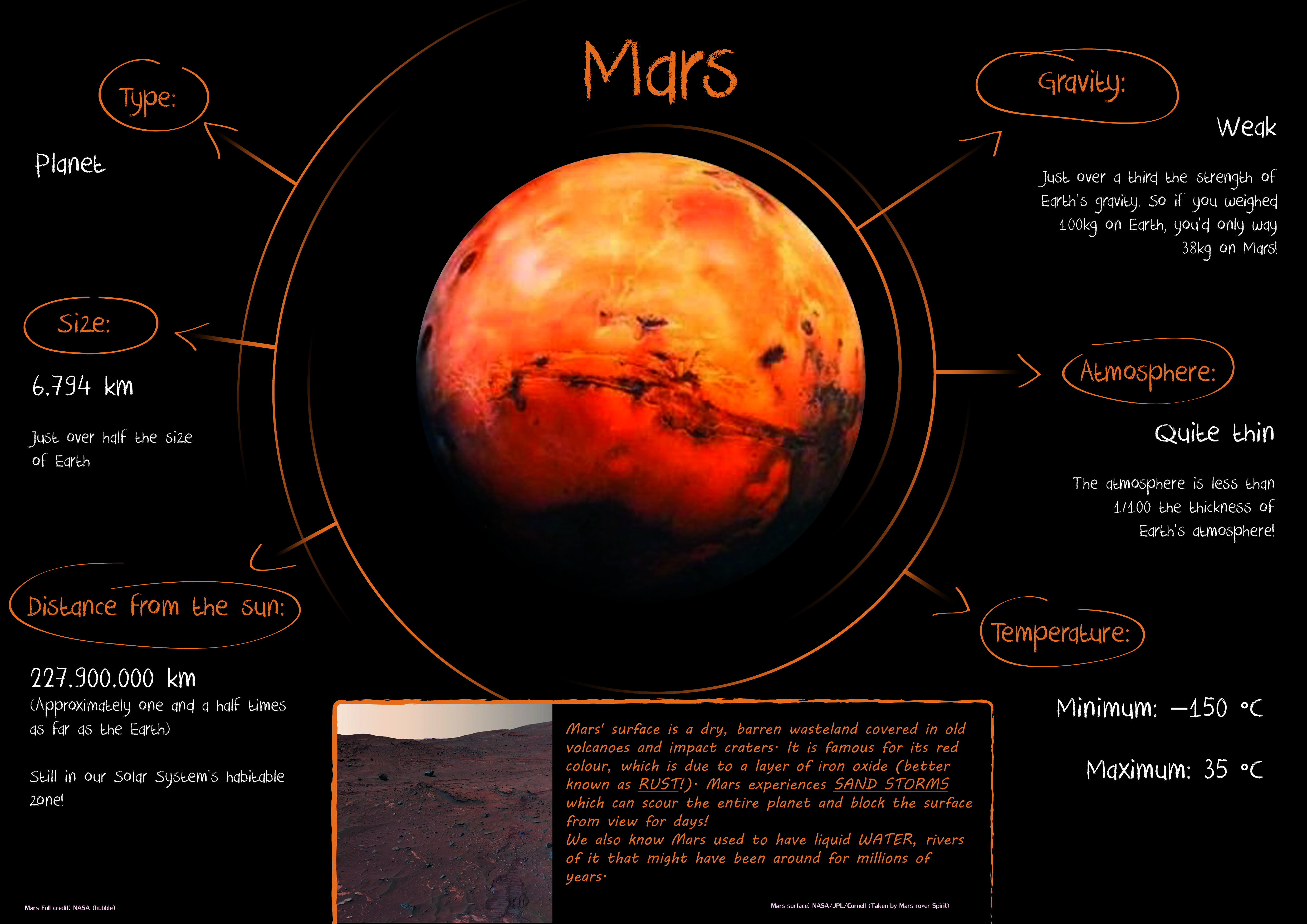 - Print off Solar System fact sheets (Earth, Mars, Mercury, Jupiter, Io and Titan). See the small image of Mars fact file as an example (attachment 1).
