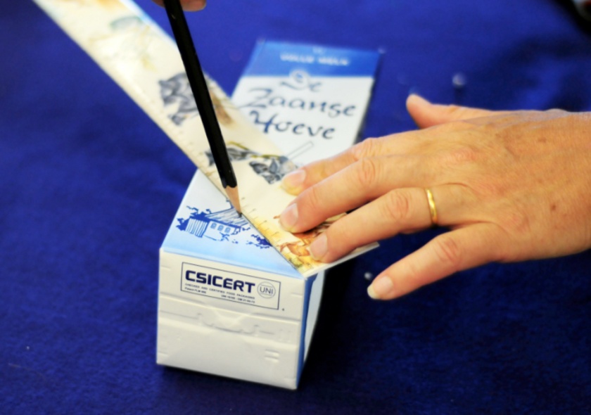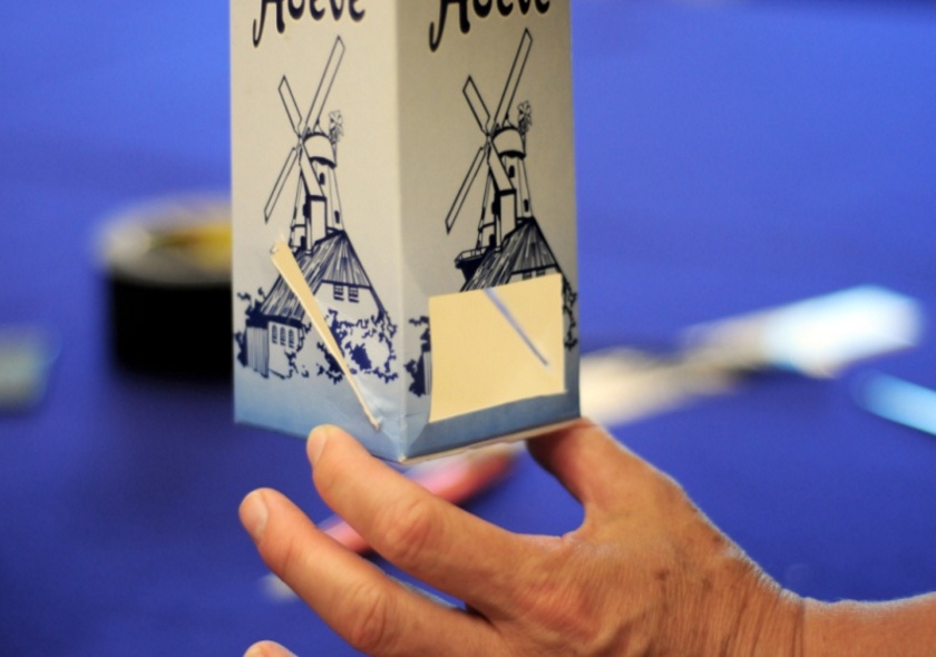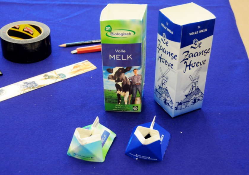After making sure that your two empty milk cartons are clean and dry, cut off their tops. (Image 1)