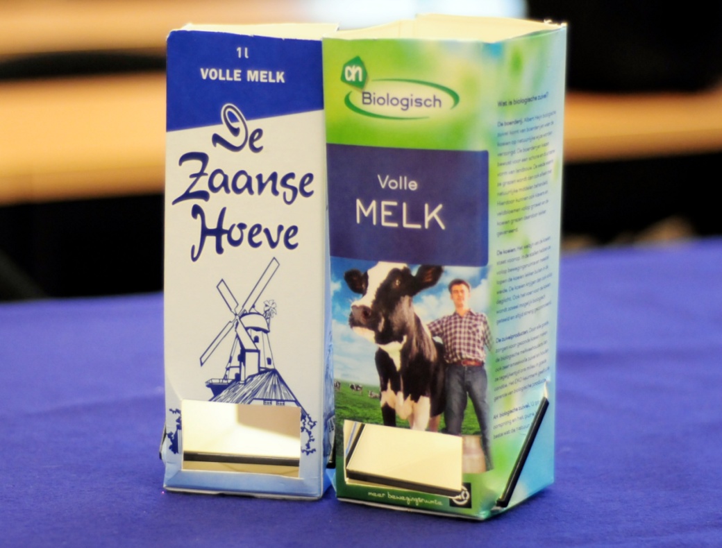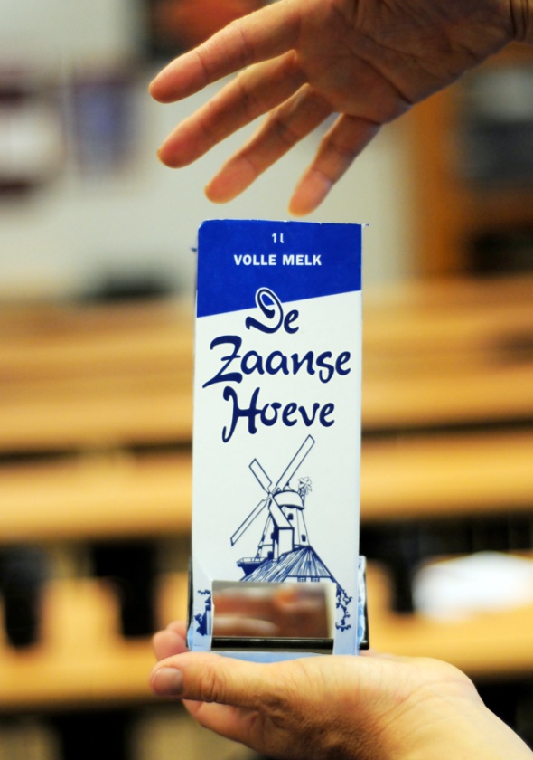 When you are satisfied with one carton, follow exactly the same steps with the second one. You will finish with two identical cartons, each with a mirror set in the base at a 45˚angle. (Image 10)