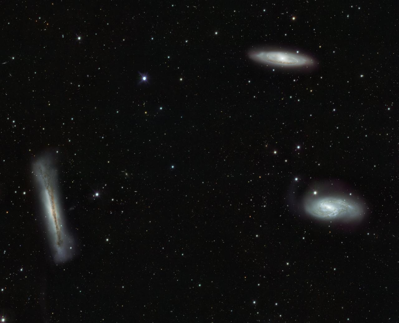 Gravity doesn't just keep humans on the Earth, it also keeps the planets in our Solar System tied to the Sun. It keeps the gas, dust and millions of stars of our Galaxy (the Milky Way) together. Even galaxies don't wander through space alone, there are also groups of galaxies that are bound together. The Milky Way is one of over 40 galaxies in our galactic group! The Leo Triplet group is much smaller, it only includes just three galaxies. You can see a picture of the entire group here.