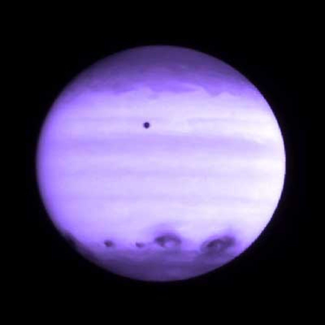 As the icy comet plummeted into Jupiter's thick, gassy atmosphere, it created an enormous dark spot, 6,000 km across, that can be seen clearly marring the planet's surface in image 2. This wasn't the only thing Shoemaker-Levy 9 left behind; most comets contain a large amount of ice at their cores, and this one was no different.