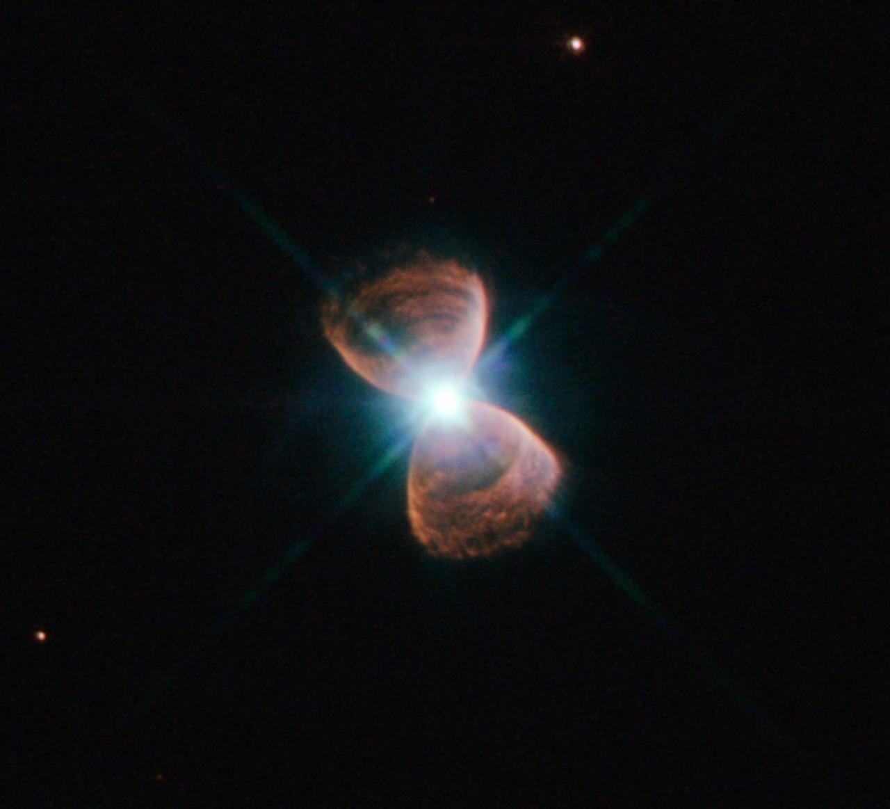 Like a last gasp of breath, Sun-like stars puff away their outer layers of gas at the end of their lives. This gas floats away into space and forms beautiful and striking clouds, which are called planetary nebulae (although they have nothing to do with planets). These clouds come in different shapes, one of which is bipolar planetary nebulae. These look like ghostly hourglasses or giant, cosmic butterflies around the remains of their parent stars.