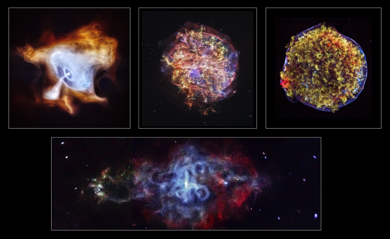 Moving from left to right, the objects are The Crab Nebula, G292.0+1.8, Tycho’s Supernova and on the bottom is 3C58.
