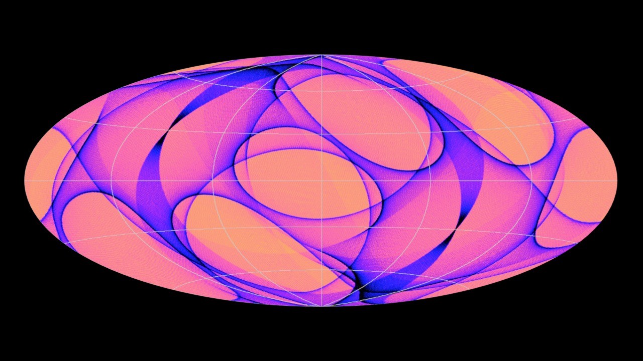 This oval picture might look like a beautifully decorated Easter egg, but it represents the entire sky. This picture is actually a map, showing how the Gaia satellite scanned the sky during its first 14 months at work.