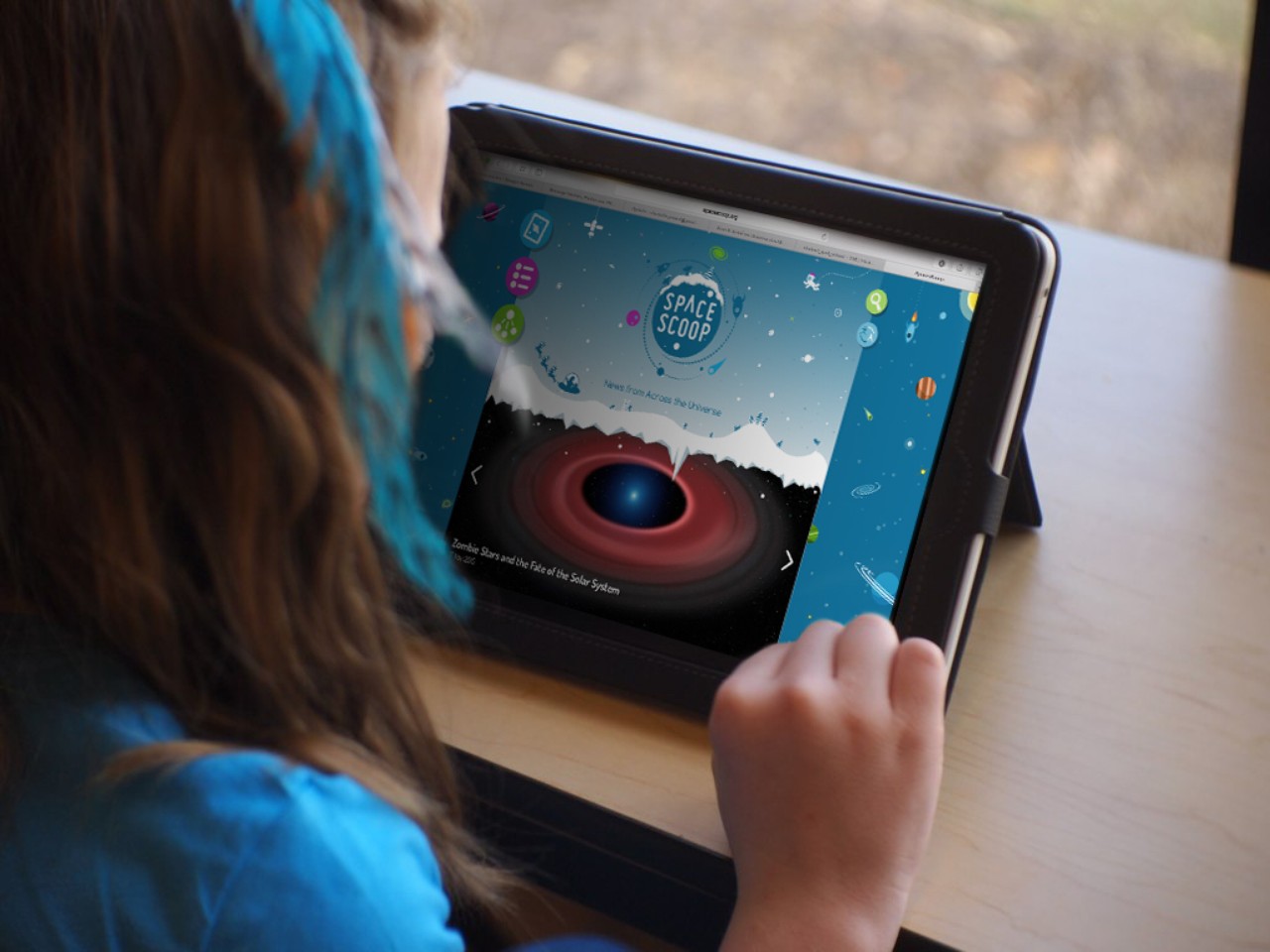 Space Scoops are published in digital form and print, as well as a mobile app, podcasts and video games. In the spring of 2013 the Space Scoop story “The Universe is Big, Beautiful...and Mostly Invisible” was featured in an official South African textbook used in primary schools all over the country. Each Space Scoop is published at the same time as the original “adult” press release; then volunteers from all over the world translate the Space Scoops into 33 languages.
