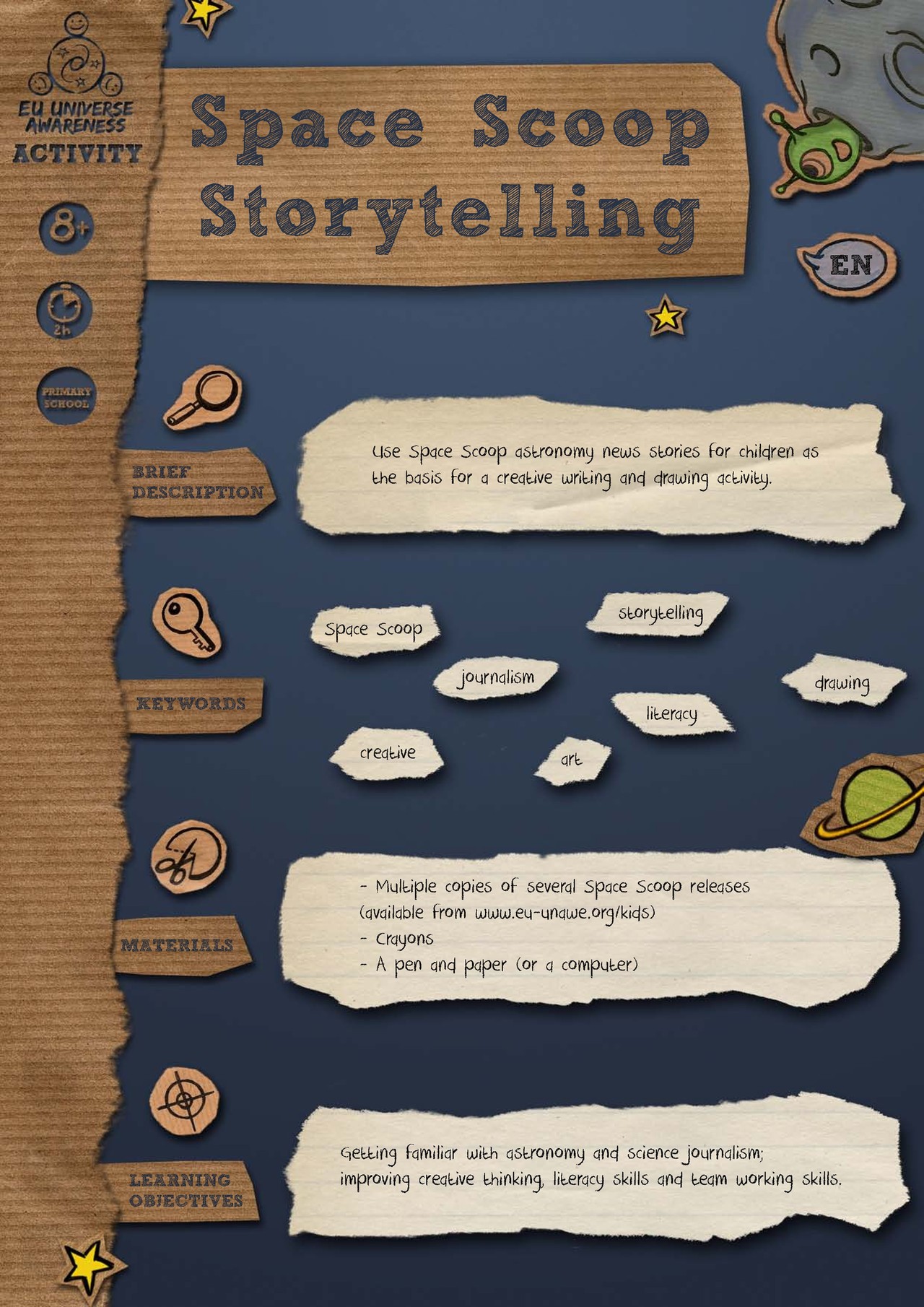 Materials needed: Multiple copies of several Space Scoop releases (available at www.eu-unawe.org/kids), crayons, a pen and paper (or a computer)