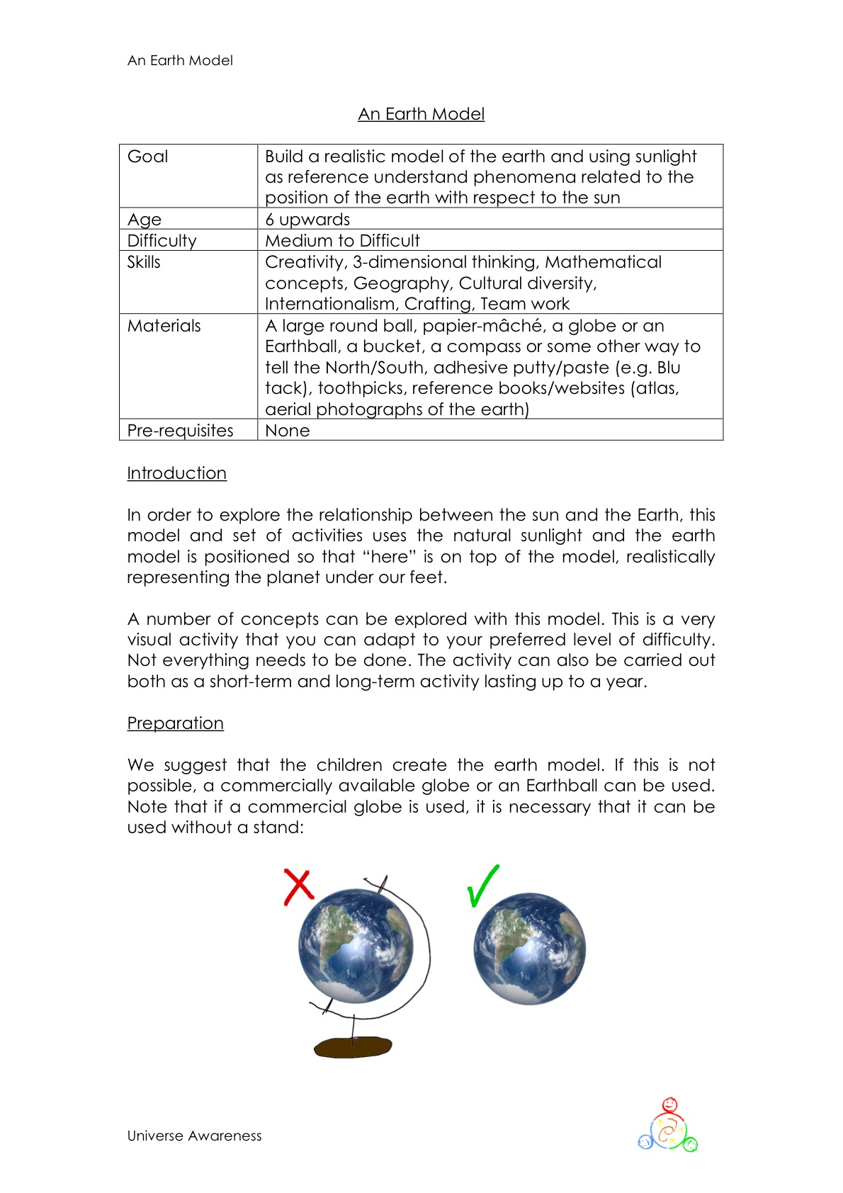 In this activity, build a realistic model of the Earth using sunlight as a reference to understand phenomena related to the position of the Earth with respect to the Sun.