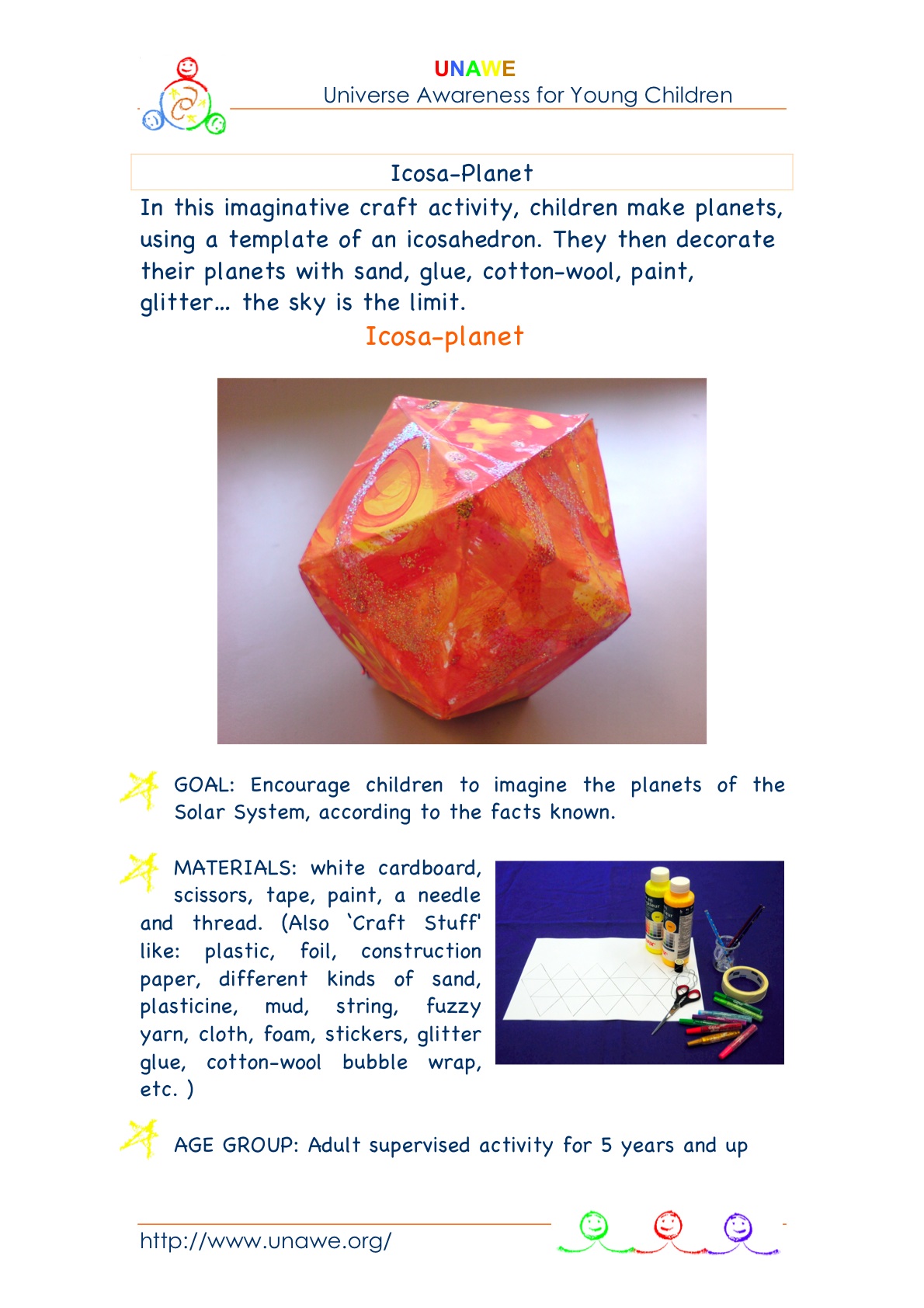 In this imaginative craft activity, children make planets, using a template of an icosahedron.