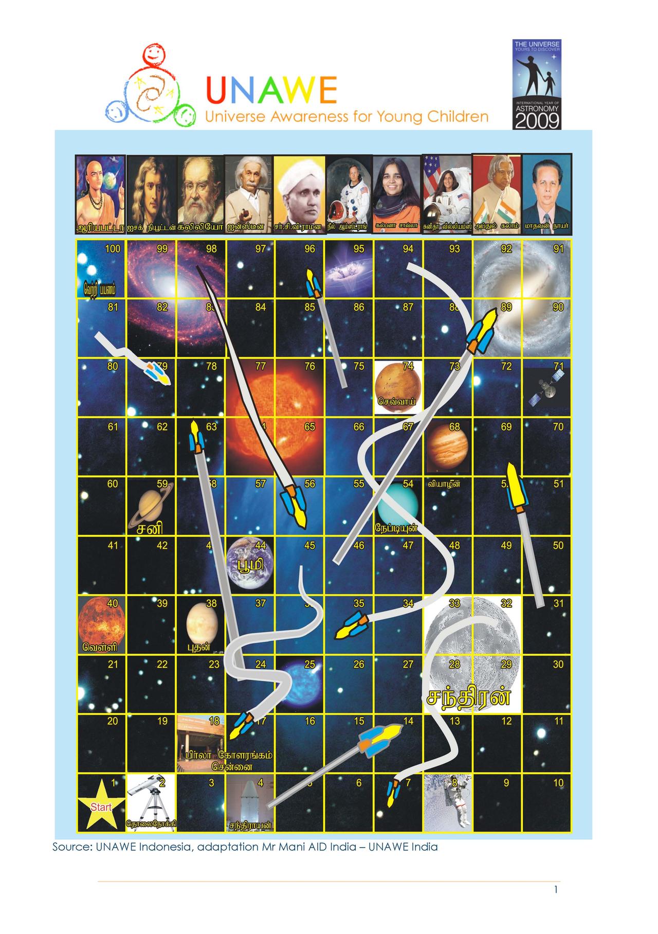 Download game boards for Snakes and Ladders, astronomy style, in Tamil.
