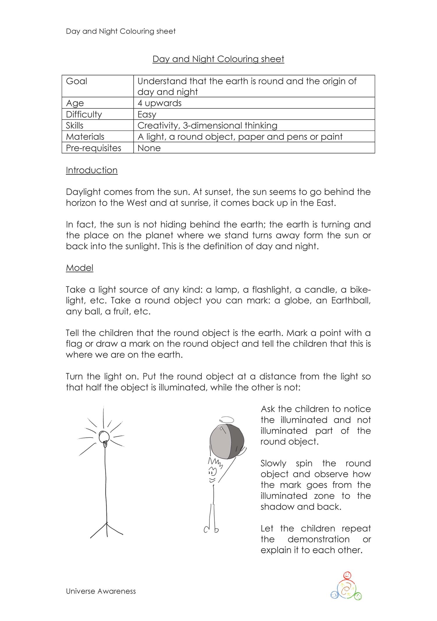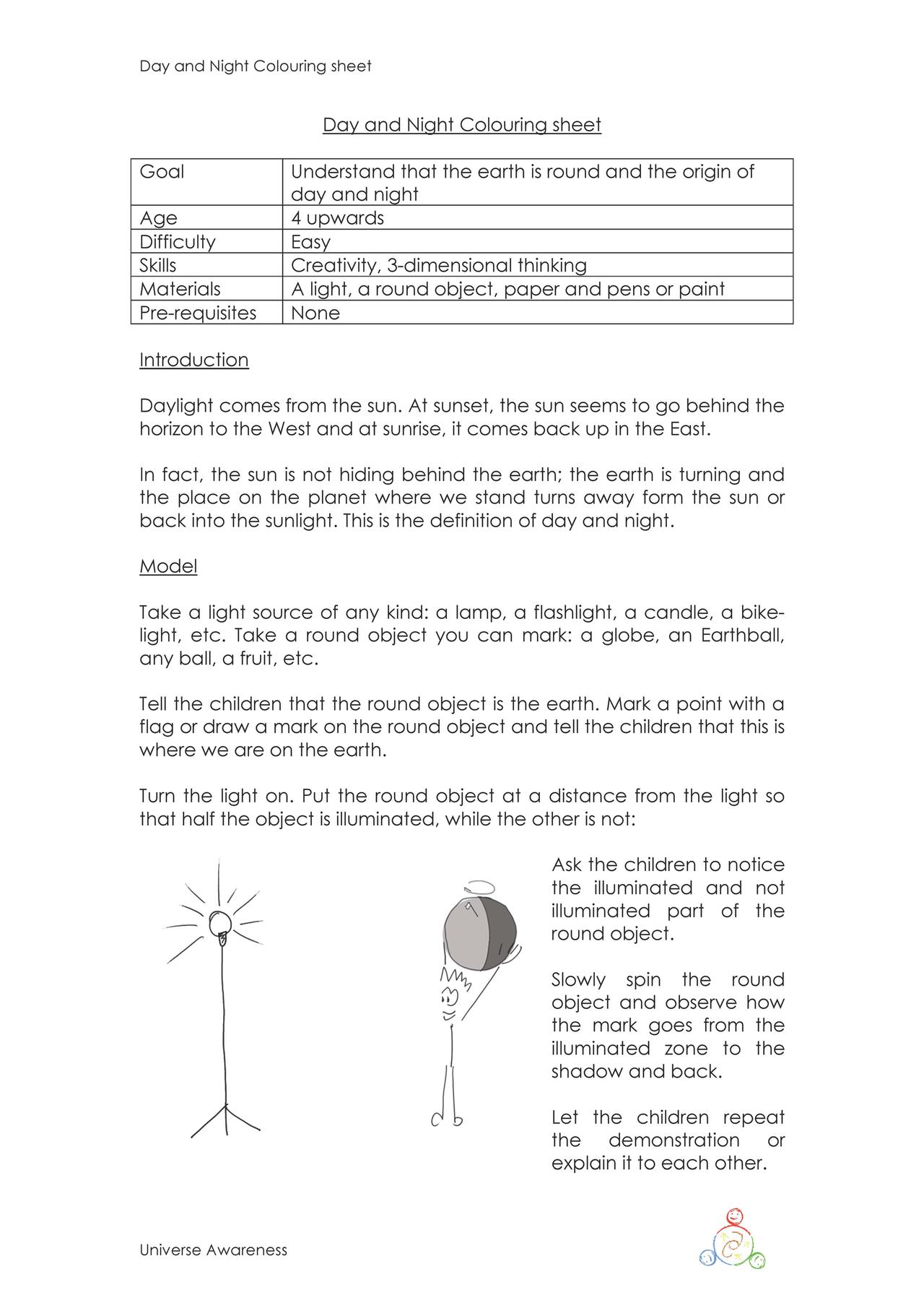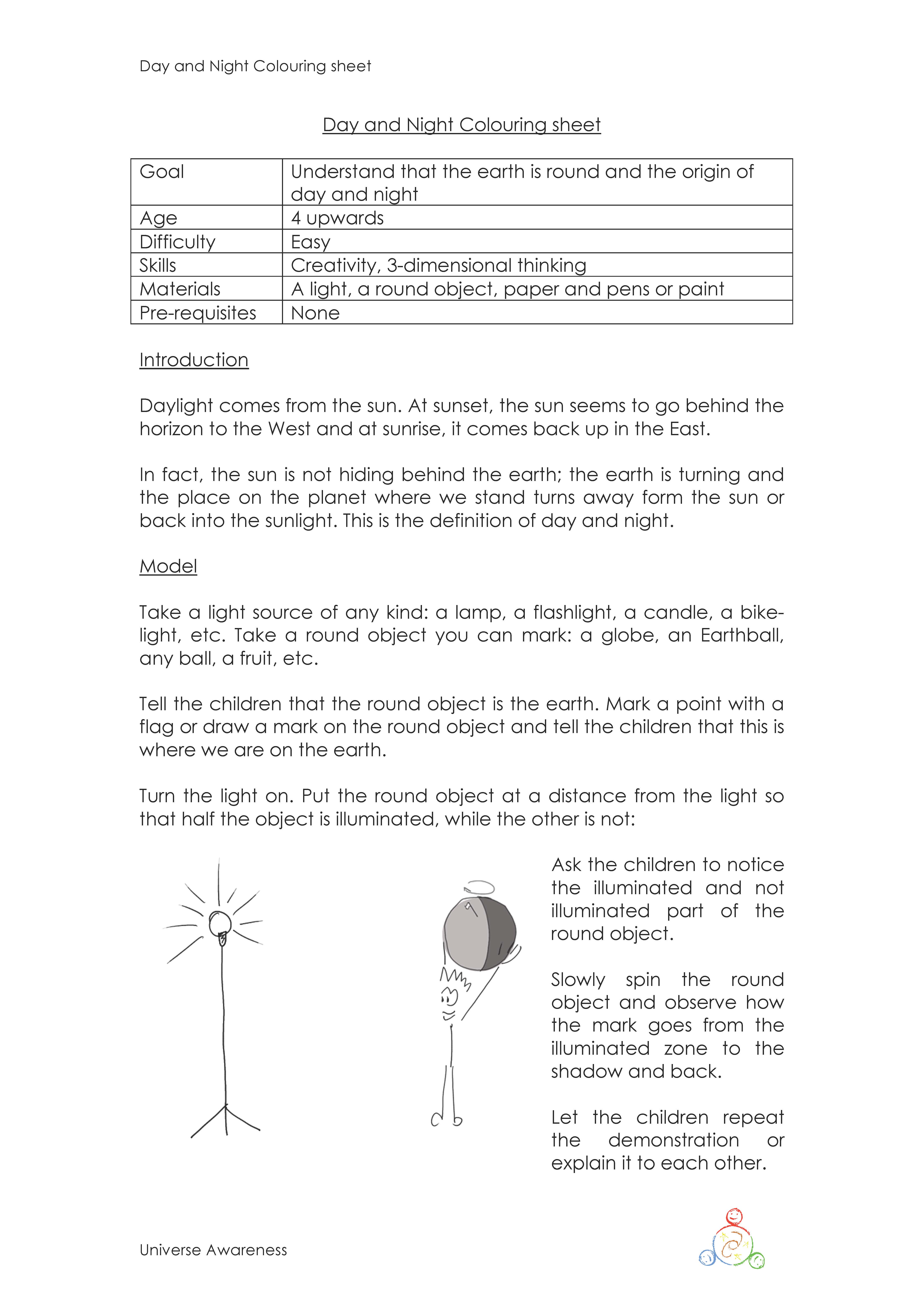 This activity helps children understand that the Earth is round and the origin of day and night. Image planets and space, and draw or paint it.