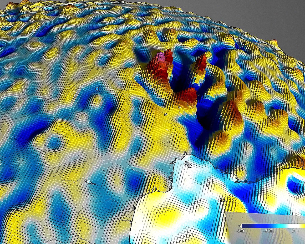 The Swarm satellites were used to create this image — the most detailed map of the Earth’s magnetic field ever made! The areas where the magnetic field is weaker are shown in blue, and the strongest regions are red. These differences are caused by the shape of Earth’s crust.
