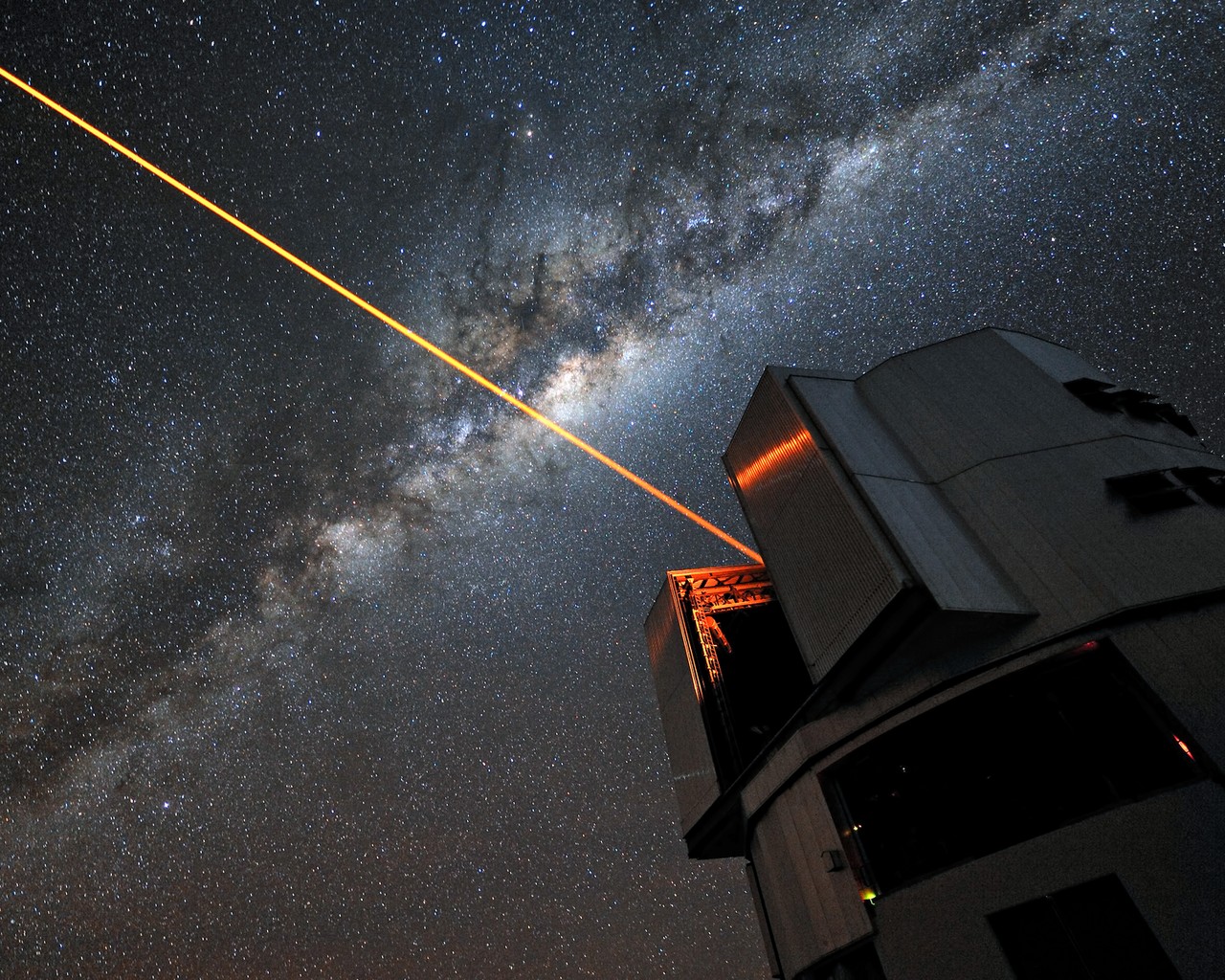 This picture shows a powerful laser shooting from the Very Large Telescope in Chile. A set of similar lasers could be used to cloak the Earth from searching alien eyes.