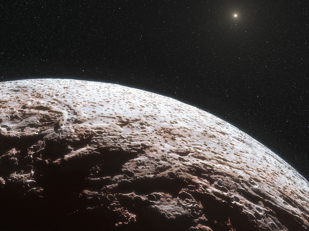 Makemake, a dwarf planet in our Solar System, appears to have no atmosphere; it is bald! This means it’s not able to hold on to the few sunrays it receives at its distant location, which is even farther away from the Sun than its cousin, Pluto.