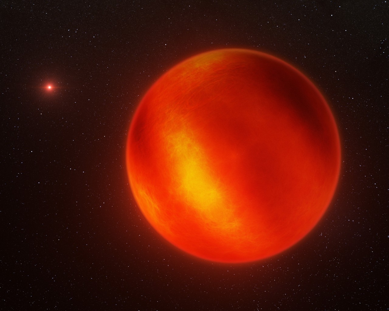 Using very powerful telescopes, scientists have just created the first ever map of the weather on a brown dwarf! Using a clever technique astronomers were able to create a map of the dark and light patches on its surface. Soon, we will be able to watch cloud patterns form, evolve, and disappear — just like on Earth. This is an artists impression of how that brown dwarf looks.