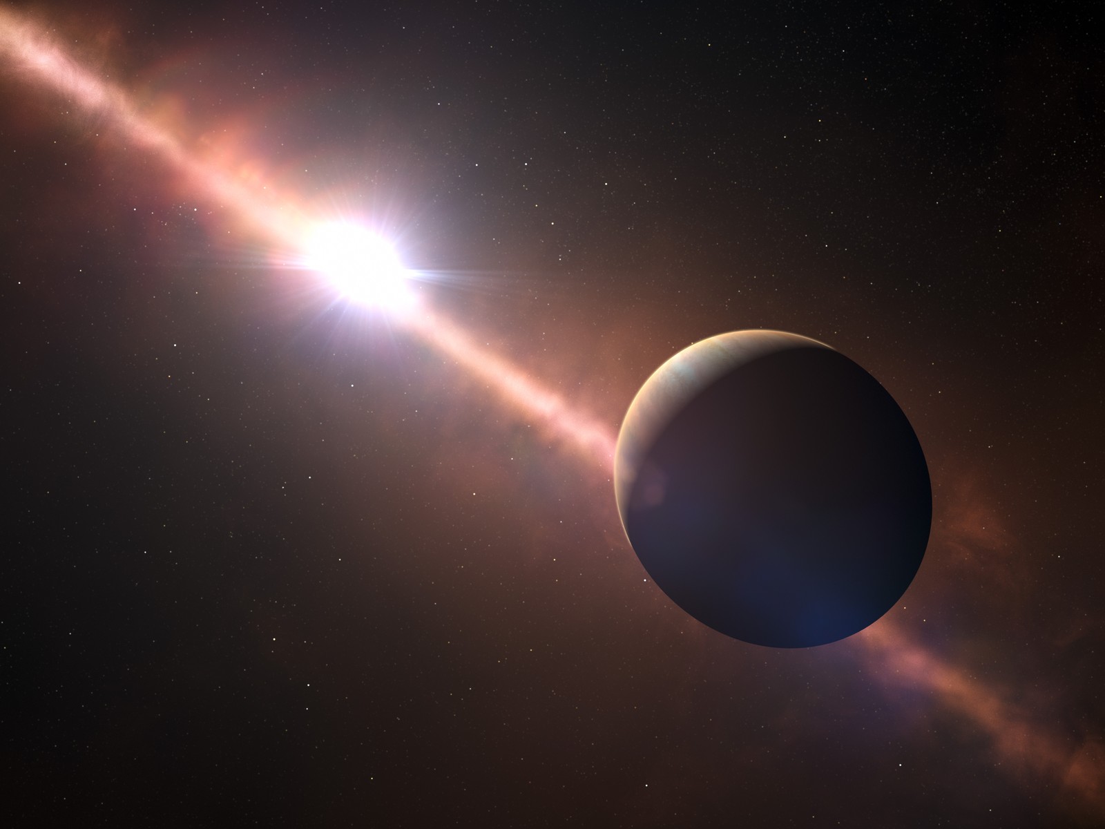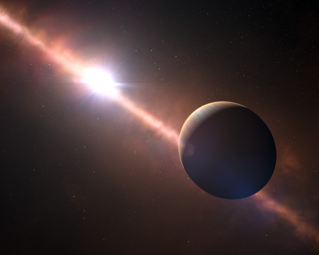 Beta Pictoris b is a planet orbiting a distant star. The alien planet illustrated here is called Beta Pictoris B. The distant world is 16 times larger than Earth, yet it has a day that lasts just 8 hours! This means the planet must be spinning through space at almost 100,000 kilometres per hour!