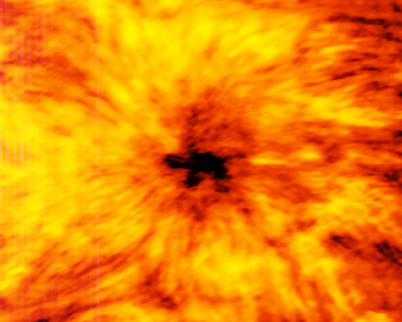 The picture above is one of the coolest (pun intended) new observations from ALMA, showing a large sunspot. Sunspots are slightly cooler places on the Sun, that appear as dark patches. The lower temperatures are caused by strong magnetic fields.