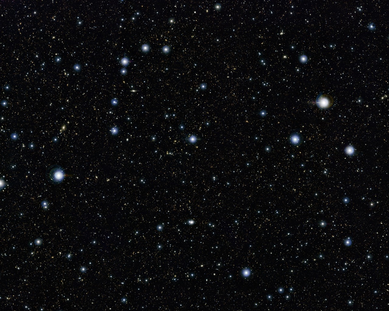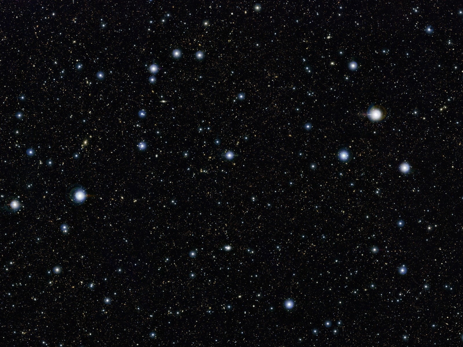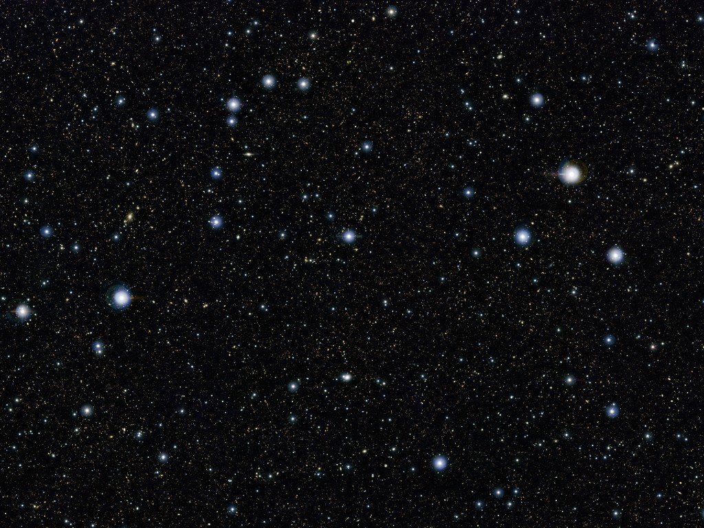 The big, blue stars scattered across the picture are stars in our galaxy, fairly close by, which is why they appear so large and bright. If we zoom in further, we see hundreds of distant galaxies! Grand, spiral galaxies; irregular, shapeless galaxies; young blue galaxies; and older red galaxies. This picture has everything! And doesn't it blow your mind to realise that each of the tiny dots in this picture is a galaxy containing billions of stars, many of which are much bigger than our Sun?!