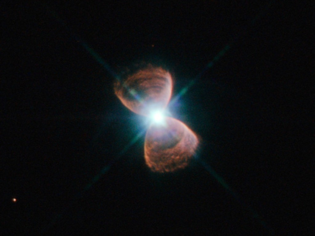 This photograph shows a bipolar nebula who’s parent star has powerful jets blowing material outwards from its North and South poles! The result is this fantastic butterfly-shaped cloud.