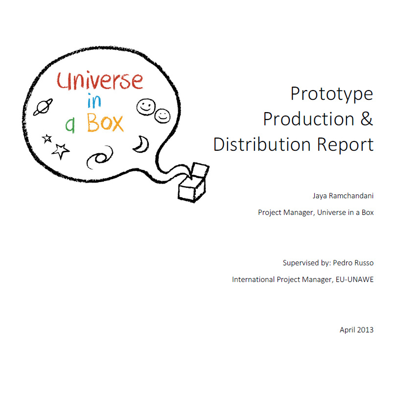 Report on the production and distribution of 50 Universe in a Box prototypes, sent to 30 countries.